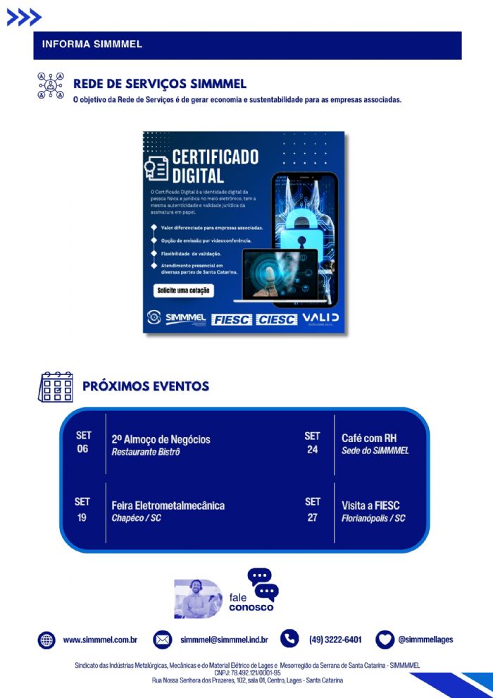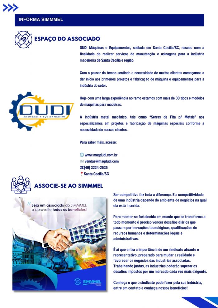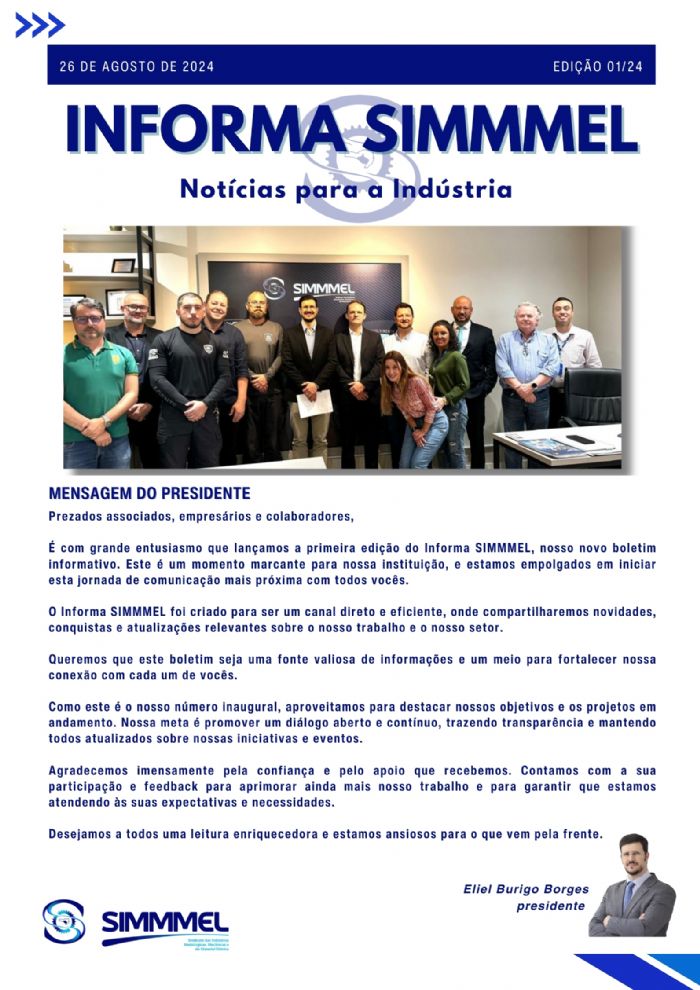 É com entusiasmo que lançamos a primeira edição do Informa SIMMMEL, nosso novo boletim informativo. O informa SIMMMEL foi criado para ser um canal direto e eficiente, onde compartilharemos novidades, conquistas e atualizações relevantes sobre o nosso trabalho e o nosso setor.