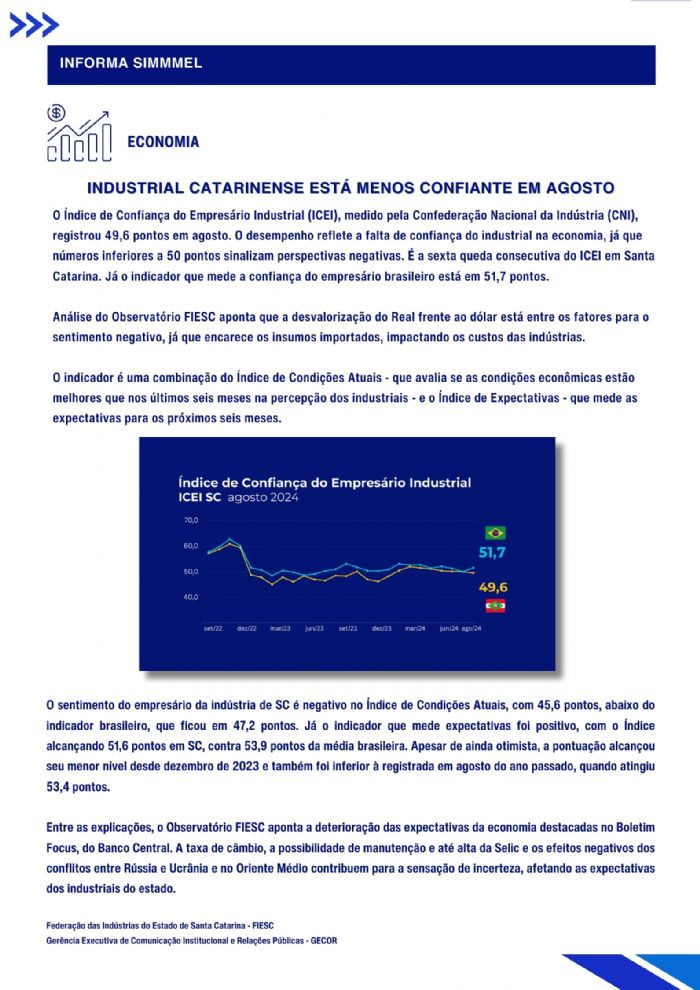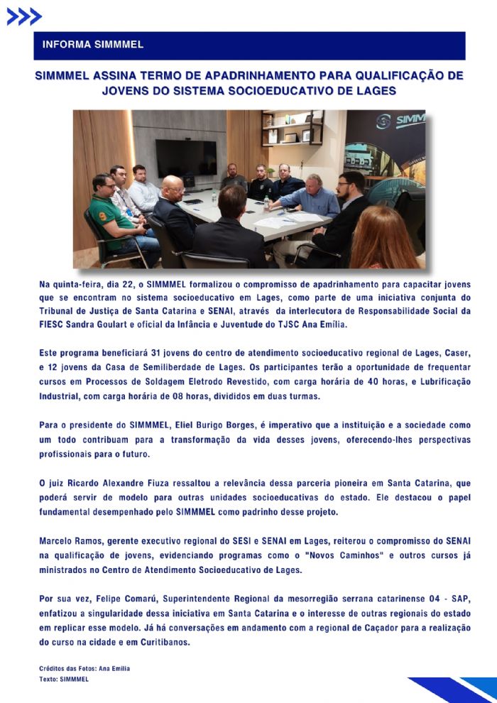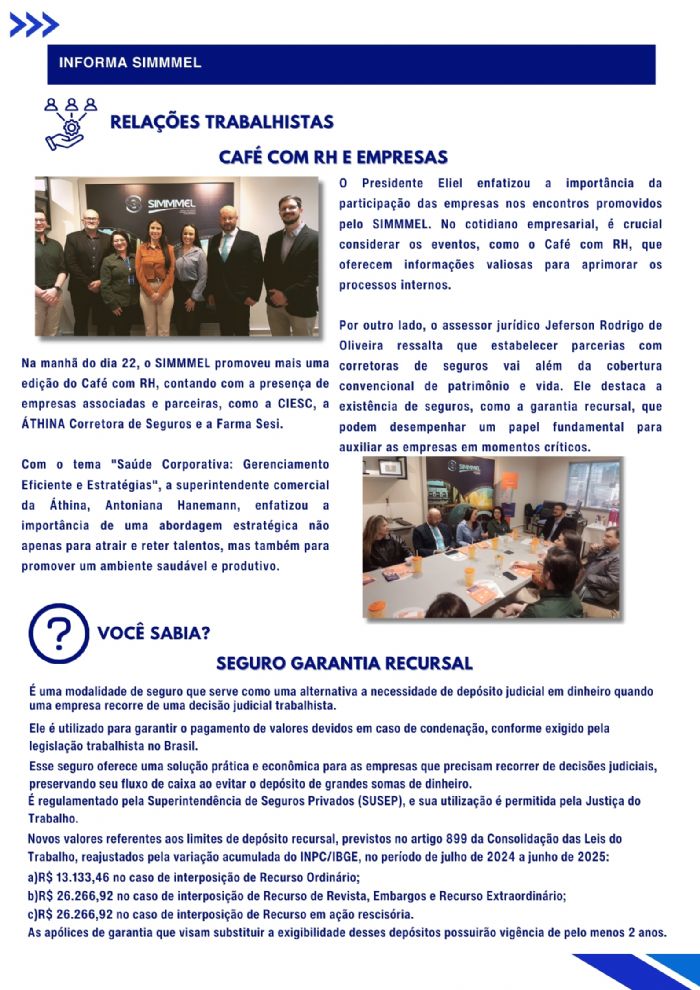 É com entusiasmo que lançamos a primeira edição do Informa SIMMMEL, nosso novo boletim informativo. O informa SIMMMEL foi criado para ser um canal direto e eficiente, onde compartilharemos novidades, conquistas e atualizações relevantes sobre o nosso trabalho e o nosso setor.